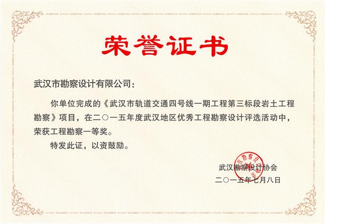 武漢市軌道交通四號線一期工程第三標(biāo)段巖土工程勘察