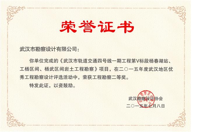 武漢市軌道交通四號線一期工程第V標(biāo)段楊春湖站、工楊區(qū)間、楊武區(qū)間巖土工程勘察